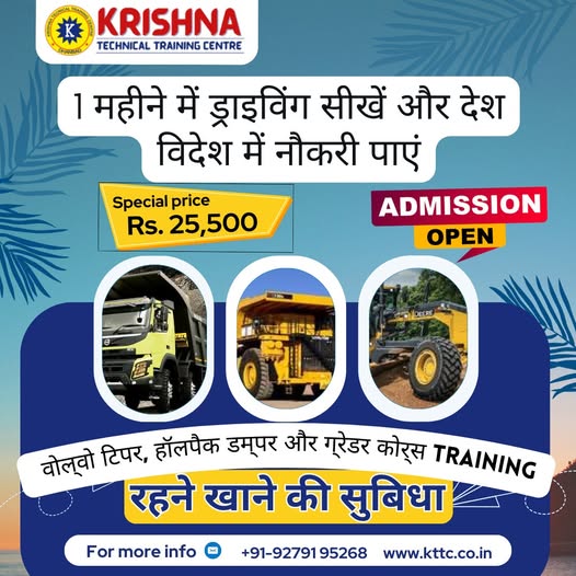 Krishna Technical Training Centre (KTTC) heavy equipment operator training के क्षेत्र में एक well-known institute है। यहाँ students को modern machines पर practical training, experienced trainers की guidance और placement assistance provide की जाती है।